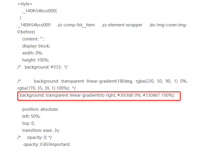 而代码中的这一段则可以调整背景色的颜色,如下图中的 #30cfd0 以及 #330867 就是两个颜色色号,它们共同组成了案例的图文效果中渐变色的效果
